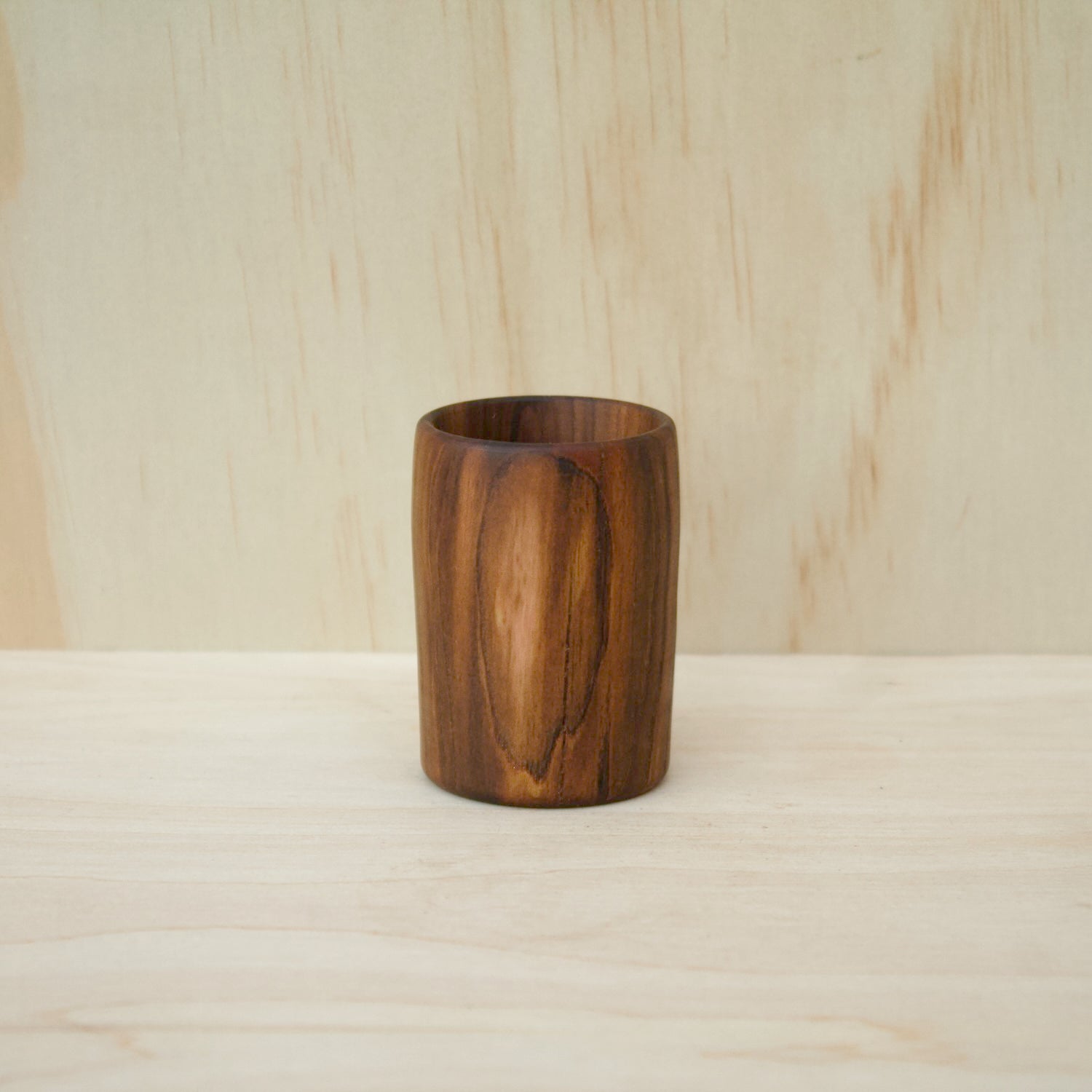 Hand‑crafted from Redbud (Cercis canadensis), this shot glass highlights the warm light‑brown to reddish hues and subtle grain patterns of a tree best known for its ornamental beauty. Redbud is native to eastern North America and is celebrated each spring for its vivid pink blossoms. Though rarely used commercially due to the tree’s small size, its wood is dense, fine‑grained, and surprisingly durable, making it ideal for small specialty items and turned objects. Over time, the heartwood deepens in color, developing a rich patina that enhances its natural charm.